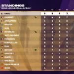 No one player dominated during the first three games of day three other than Haiden, who sat atop the leaderboard halfway through the day at 19 points. Close behind Haiden were Canbizz, Kevin Parker, and Ging—all tied at 16 points. And in fifth place was Enzo with 14 points. Heading into the final game of the day, Canbizz and Ging topped the leaderboard.