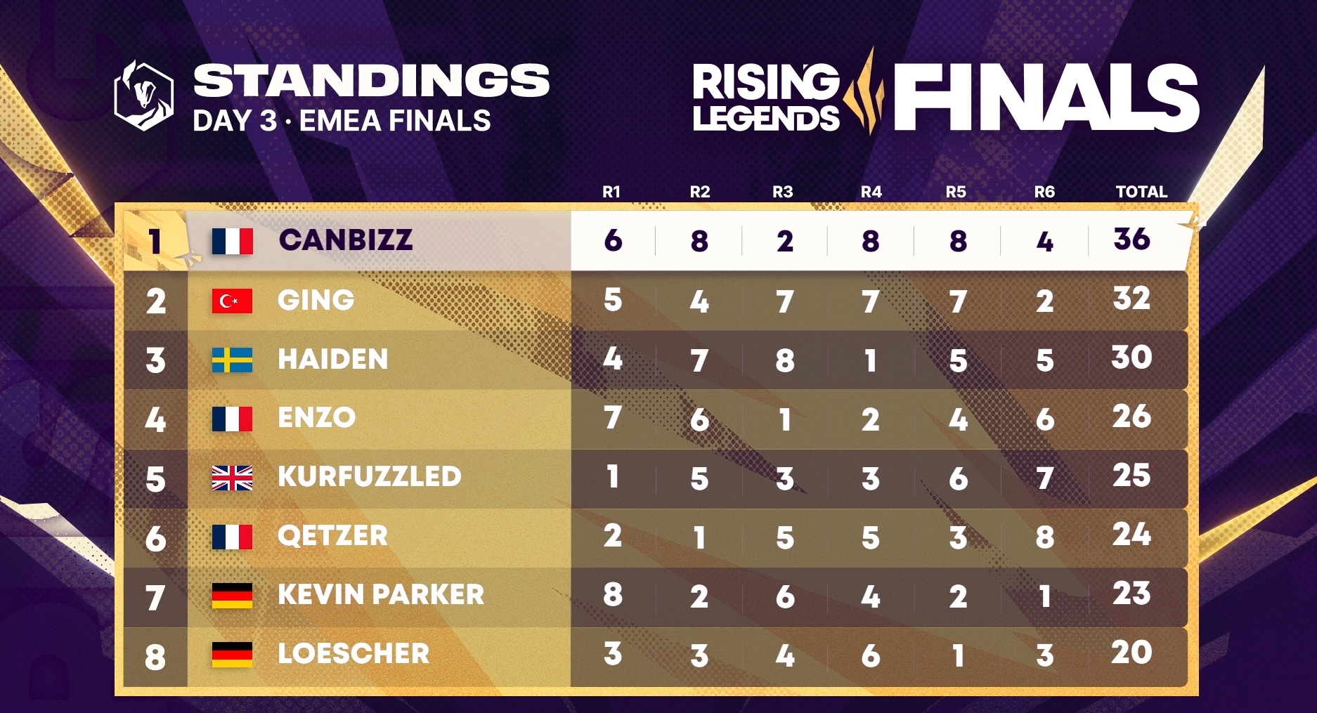 Enzo from France started off hot during the six games played on day one and continued that streak into day two, finishing atop the leaderboard with 80 points and five lobby wins between both days. Close behind Enzo were Ging and Kevin Parker, also making it into the top eight and advancing to the final day of the EMEA Regional Finals.