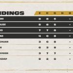 After game six, Dishsoap was tied for first with Ningli3z at 38 points after earning his third lobby win during game one. Socks was in second with 35 points, and Kahdei was in fourth with 34 points. Dobule61 made it into the top eight with 33 total points, while Pockygom was tied at 31 points.