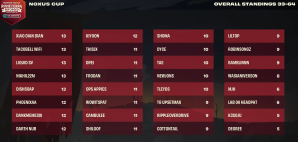 Just missing the top 16 cut through tiebreakers at 23 points were TL Rereplay, Ramkev, and Trikpi. Winning the tiebreaker was ScoobyDooo. Heading into game six, Setsuko was still atop the leaderboard with 40 points. Sitting in second was Guubums at 34 points and Milk at 31 points.