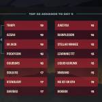 Just missing the top 32 cut were Aesah, Frodan, and Davidas on 27 points. Winning the tie-breaker at 27 points was DPEI.