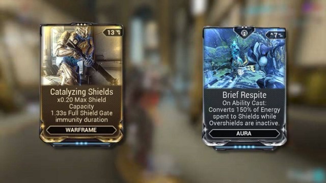 - Catalyzing Shields: Reduces shield capacity by 80 percent but guarantees 1.33 seconds of invulnerability.