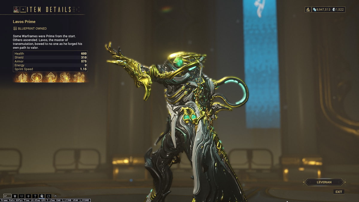 Lavos is an alchemist with each of his abilities applying one of the base elements. You can, of course, combine these elements for devastating combos. For example, you can mix his first ability Orphidian Bite, and second Vial Rush to inflict Viral onto enemies. While it takes some time to get used to the various combos, Lavos is an incredibly fun Warframe to play, and the Prime only makes it better.