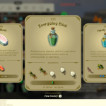 The ingredients will bounce around in the pot, and after a few seconds, you’ll have an Energizing Elixir added to your inventory. The more critters with stamina-restoring powers you add, the more stamina the elixir will restore. To consume the elixir, simply go into your inventory, scroll over to the food tabs using the left or right bumpers, and select the elixir you want. Then choose the “Eat” option, and your stamina will be restored.